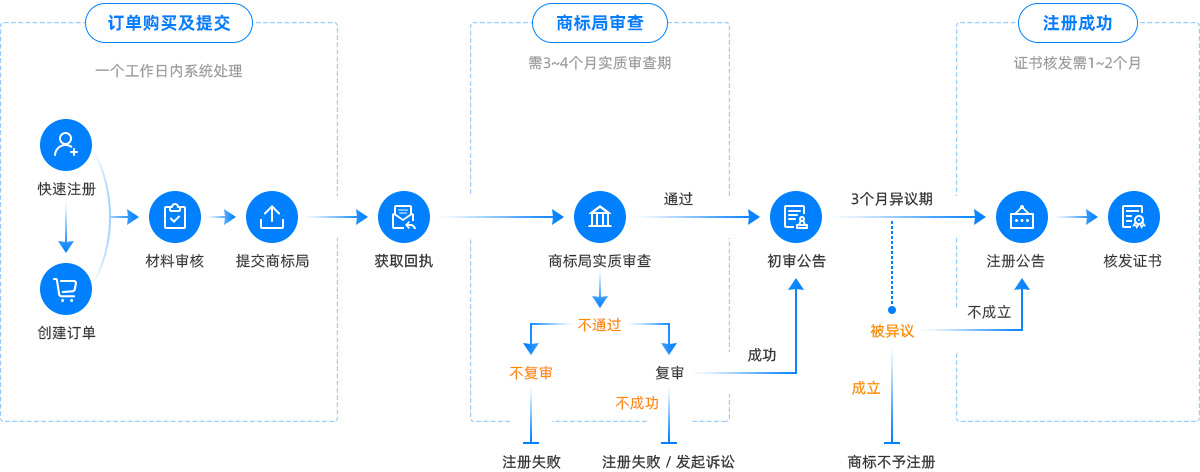 提供在线标准化服务,流程透明可视化,关键节点短信、邮件通知,申请进度一目了然
